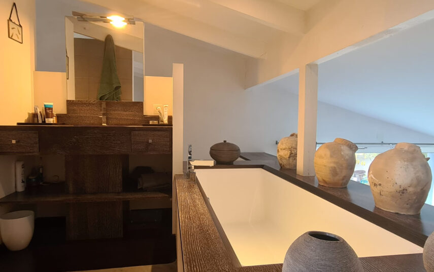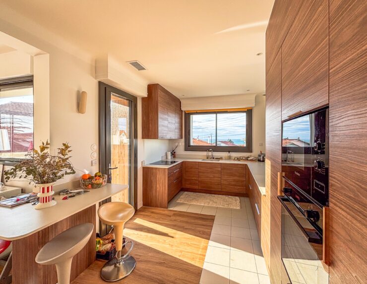 - Le Niveau Supérieur : Une pièce de vie magistrale, baignée de lumière, s’ouvrant sur une terrasse avec une vue imprenable sur les montagnes. La cuisine, quant à elle, vous réserve le spectacle de l’océan pour vos moments gourmands. Ce niveau accueille deux suites avec salles d’eau privatives.
