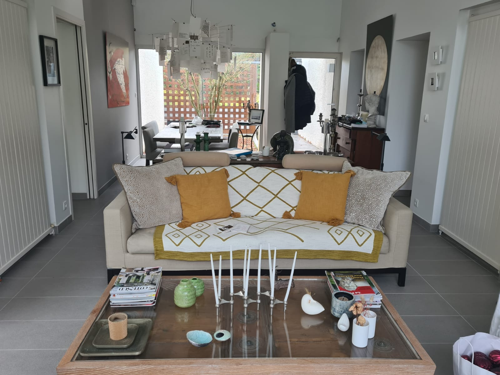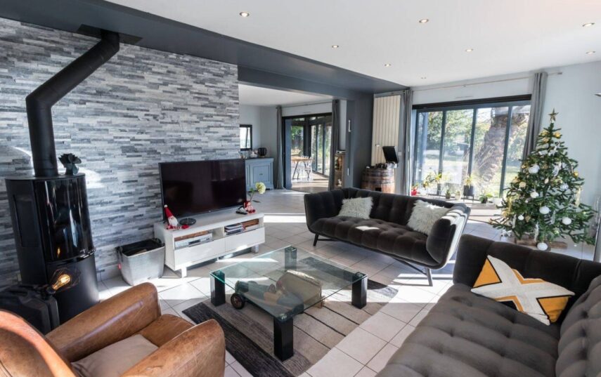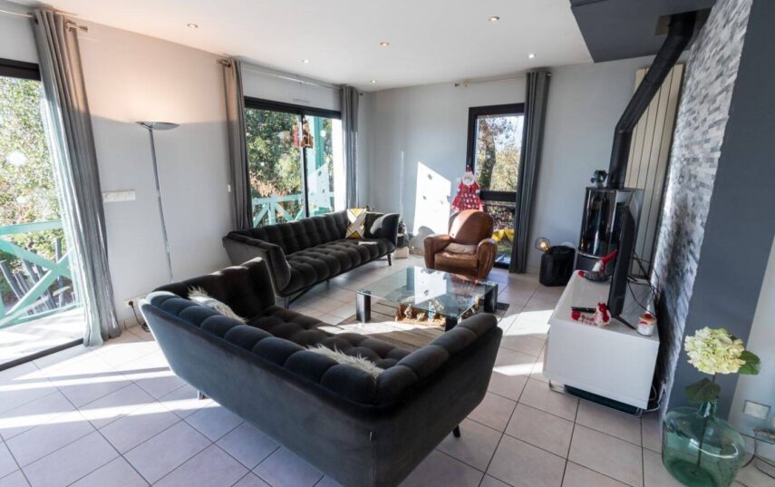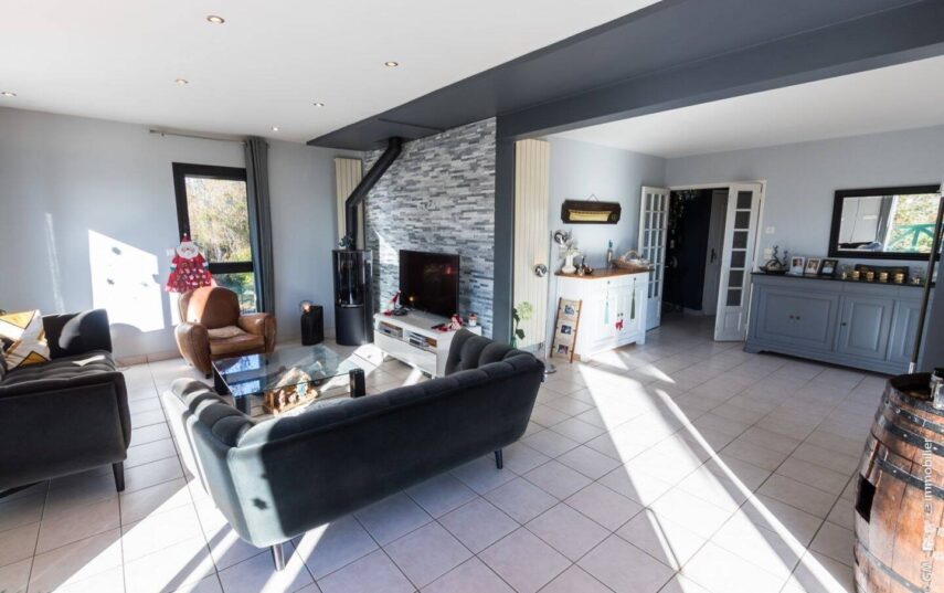 - Espaces de Réception : Un salon traversant baigné de lumière, agrémenté d’un chaleureux coin cheminée pour vos soirées de détente. La cuisine est séparée et entièrement équipée.