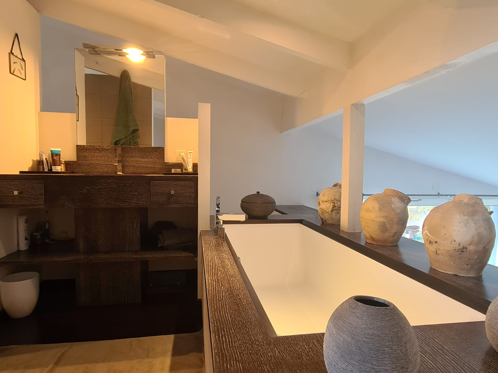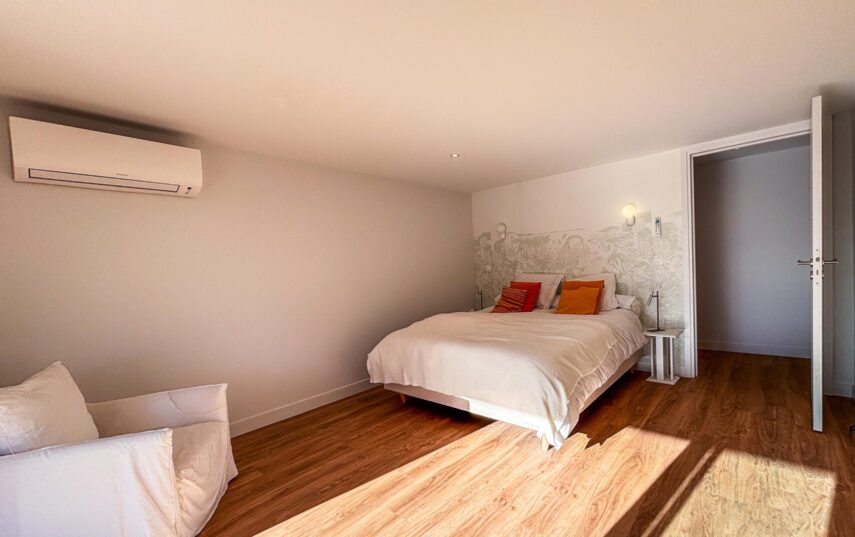 - La Suite de l’Étage : Une suite parentale avec sa salle de bain privative comprenant baignoire et douche, offrant un véritable sanctuaire de tranquillité.