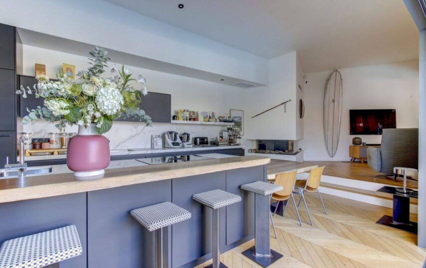 L’élégance à l’état pur. Entièrement repensée par un architecte de renom, la villa est une demeure de caractère où chaque détail a été soigné. Ici, les volumes lumineux et les matériaux nobles créent une atmosphère à la fois luxueuse et apaisante, à quelques minutes de l’effervescence du centre de Biarritz.