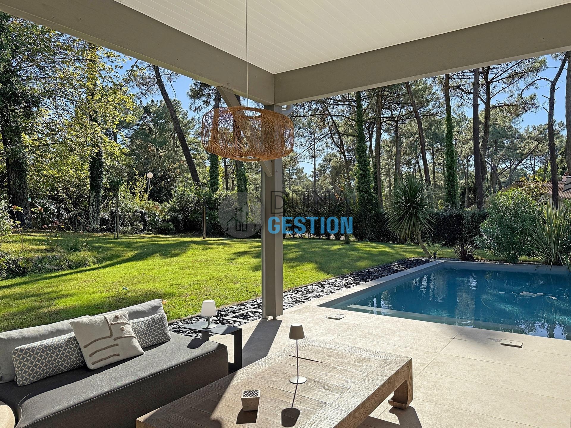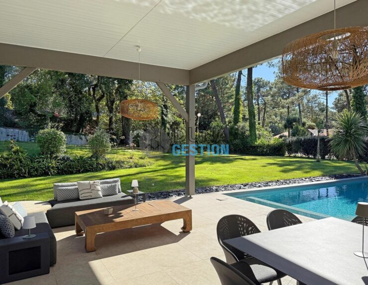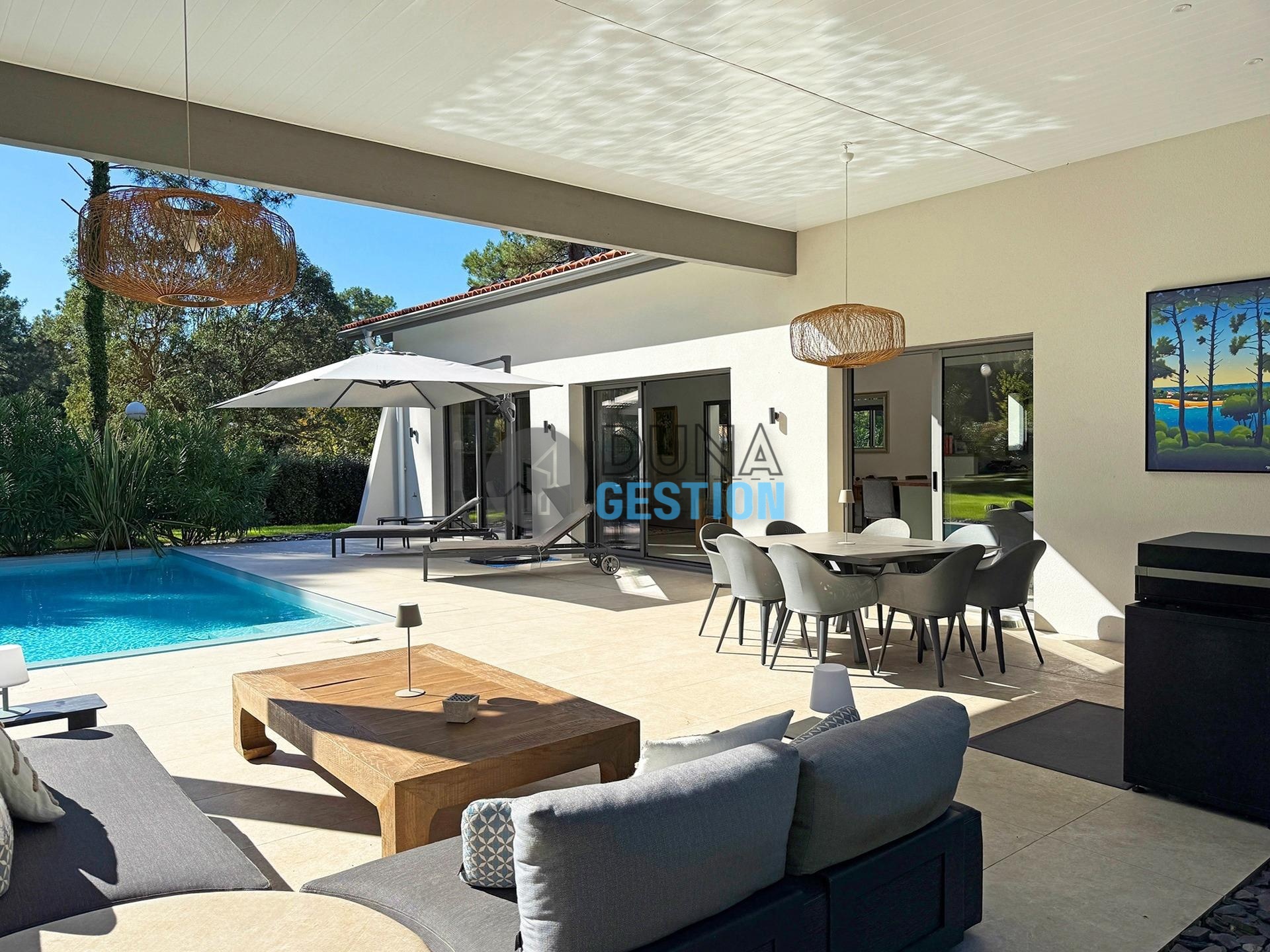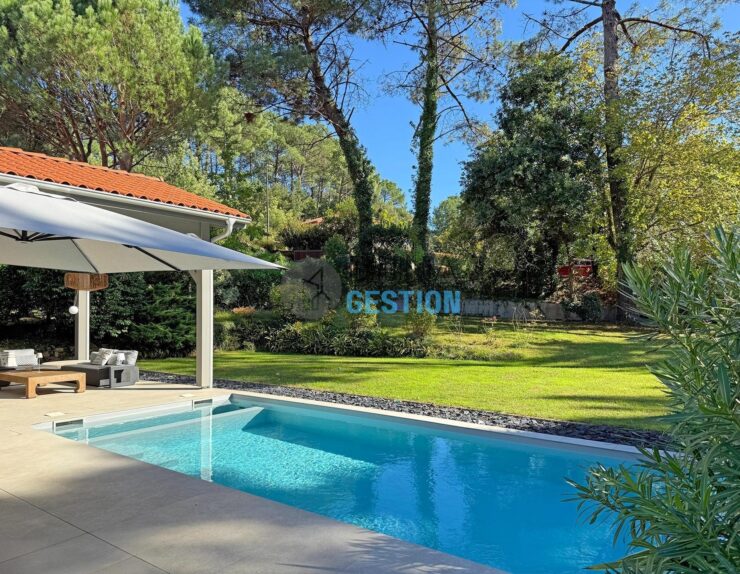 - Jardin et piscine : Le jardin a été paysagé pour mettre en valeur l’architecture de la maison. La piscine est là pour se rincer après le surf ou juste pour chiller au calme après un tour au marché.