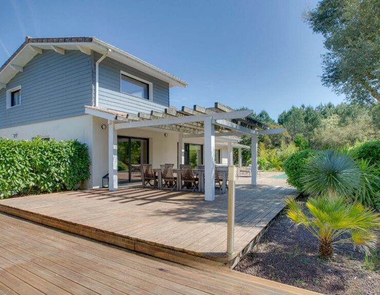 Nichée dans le secteur le plus prisé de Capbreton, la villa Sola est une signature architecturale de 2008 qui célèbre l’art de vivre landais. Entre forêt et océan, cette propriété rare se déploie sur un terrain spectaculaire de plus de 3 000 m², offrant un calme absolu à quelques coups de pédales des vagues.