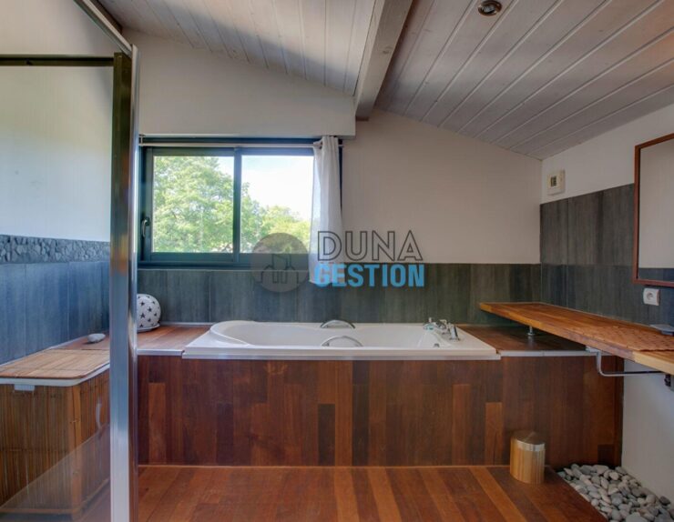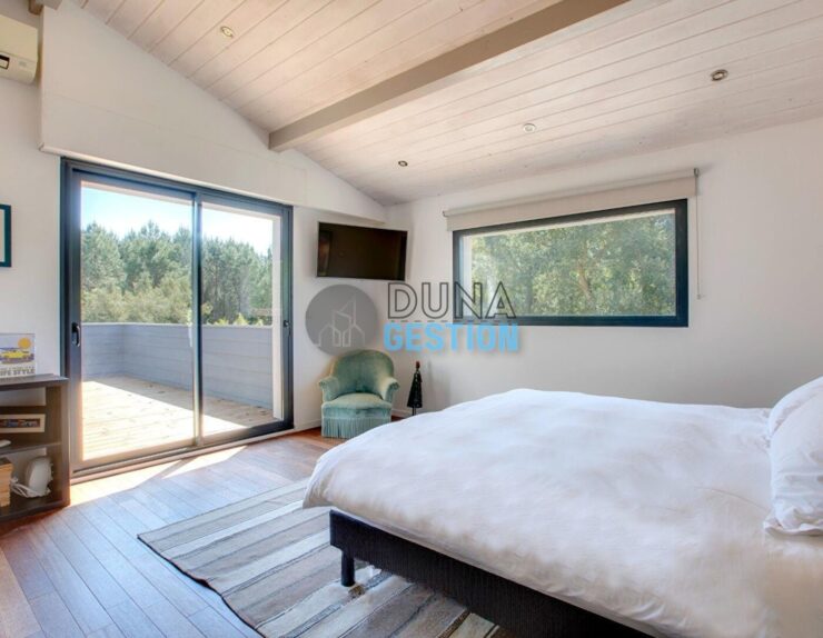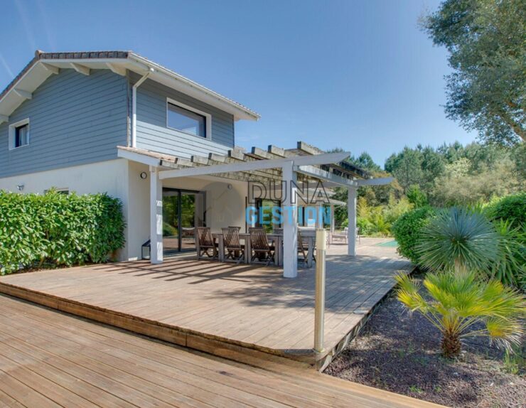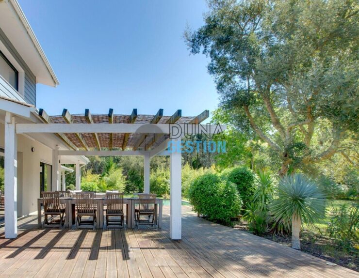 La Villa Sola, c’est une maison d’architecte construite en 2008 qui résume parfaitement l’esprit des Landes. Elle est située dans le coin le plus recherché de Capbreton, sur un terrain immense de plus de 3 000 m2. On est vraiment entre la forêt et l’océan, au calme total, mais tout près des vagues.