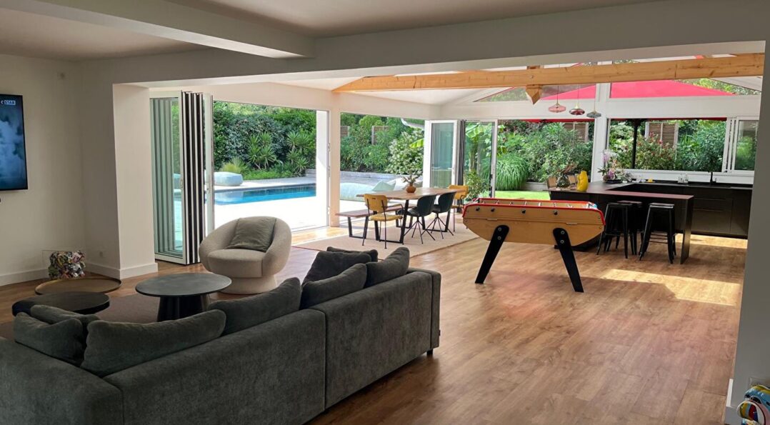 Villa Contemporaine avec Piscine et magnifique jardin 🌿 Villa Contemporaine avec Piscine et magnifique jardin À seulement 10 minutes des remparts de Bayonne, la villa est une demeure contemporaine de 1991 qui allie élégance et volumes généreux. Nichée dans un quartier résidentiel très calme, elle offre un cadre de vie exceptionnel sur un parc paysagé de…
