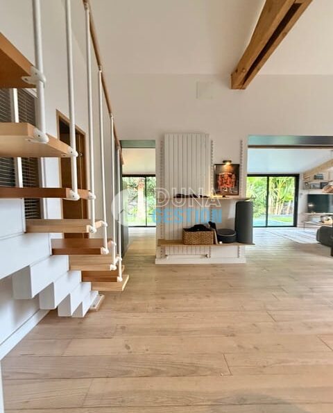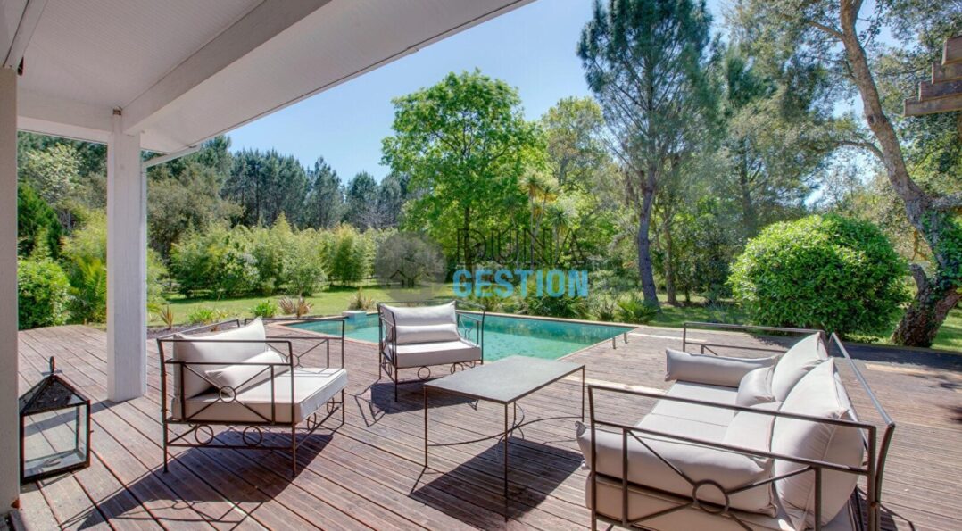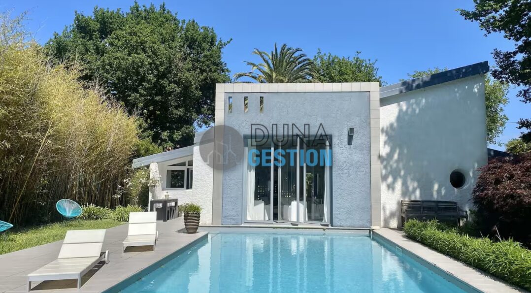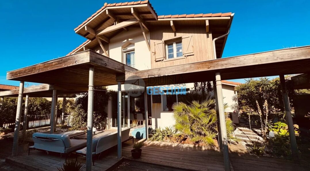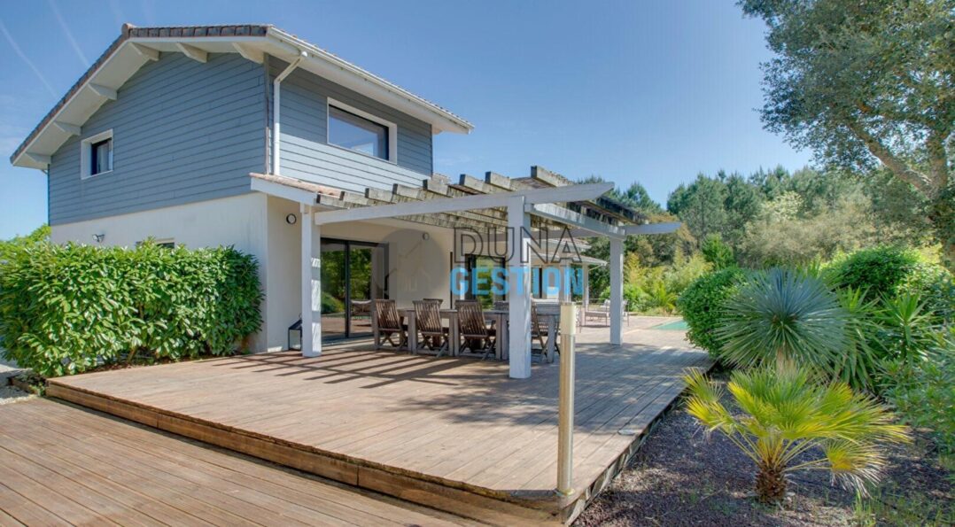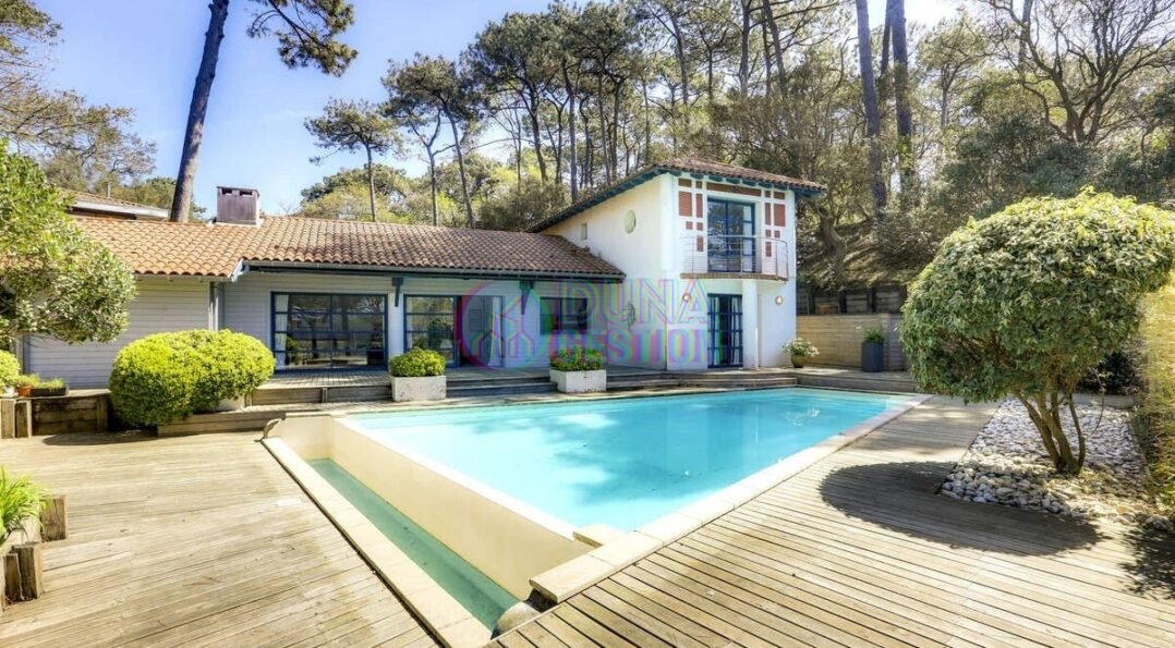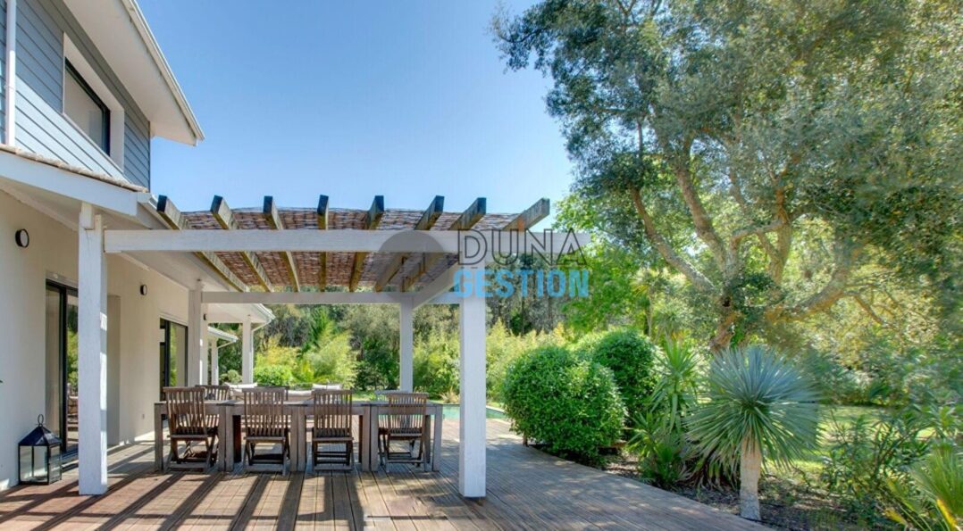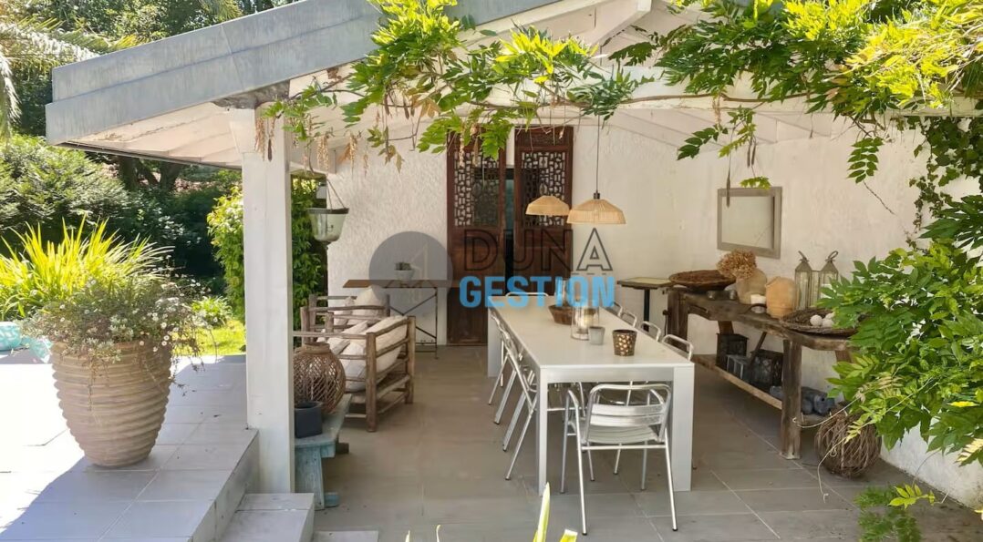 La Villa Nara est un vrai havre de paix situé dans le quartier ultra-prisé des Estagnots. Posée sur un terrain de 1 000 m2, elle offre un cadre rare : une expo plein sud avec une vue apaisante sur une vallée boisée non constructible. On y vit au rythme des Landes, entre l’odeur des pins…