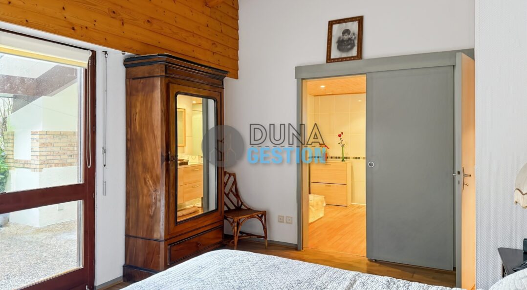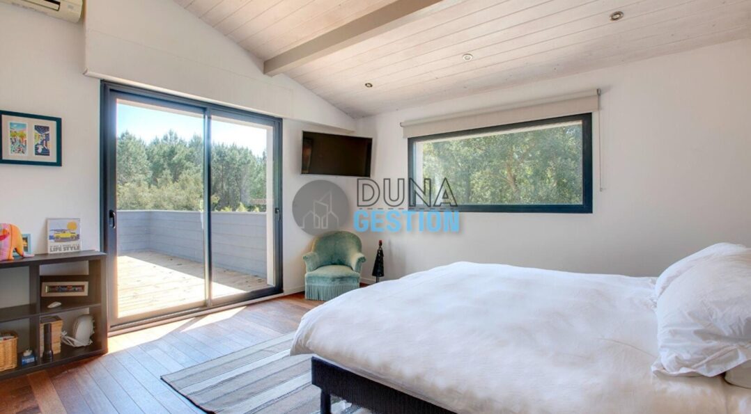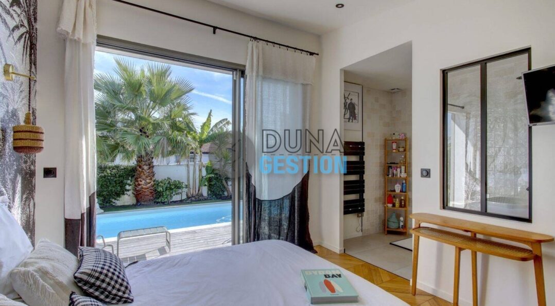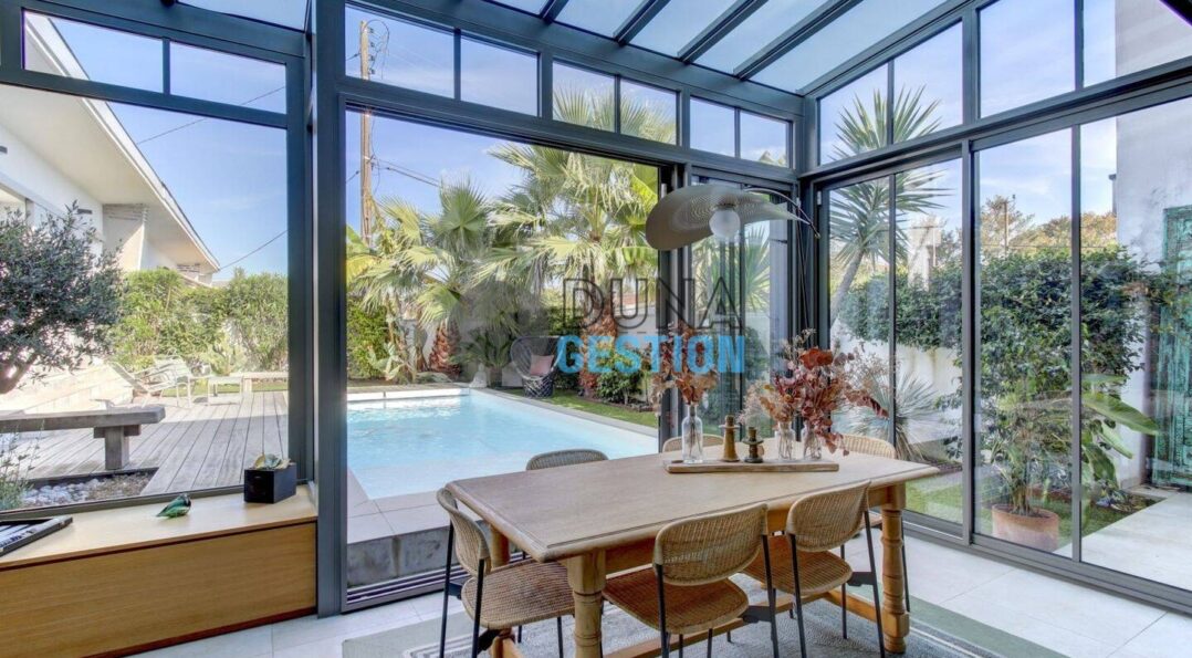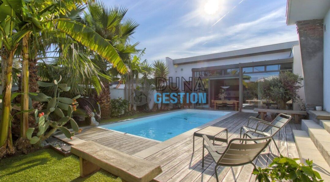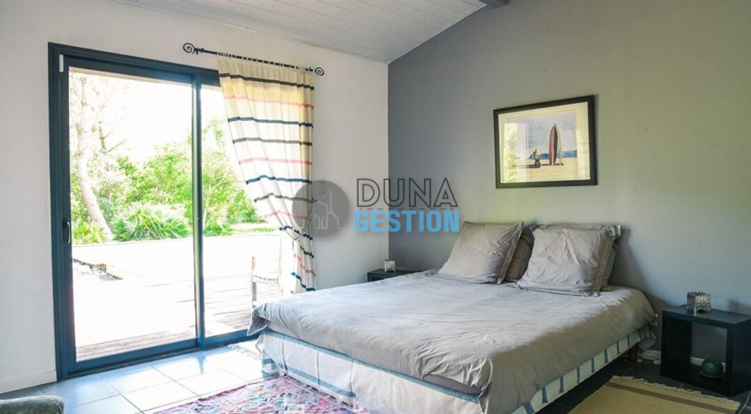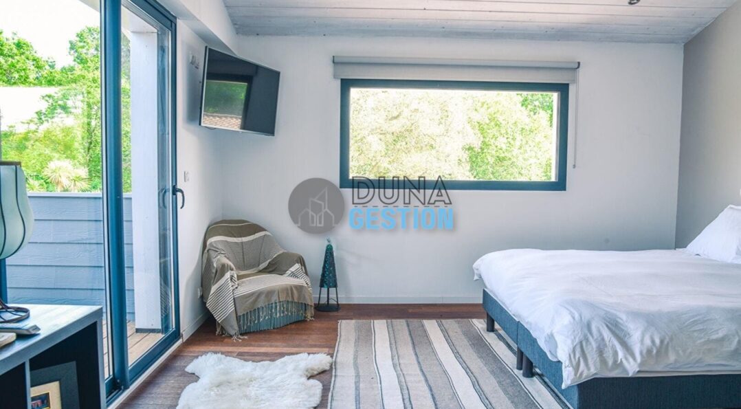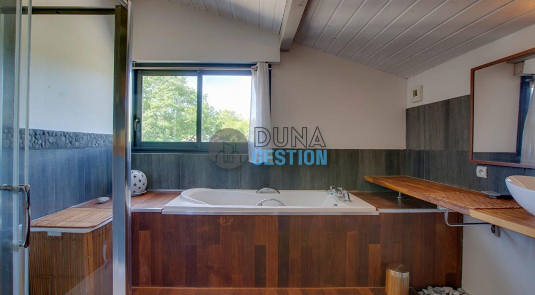 La Villa Nara est un vrai havre de paix situé dans le quartier ultra-prisé des Estagnots. Posée sur un terrain de 1 000 m2, elle offre un cadre rare : une expo plein sud avec une vue apaisante sur une vallée boisée non constructible. On y vit au rythme des Landes, entre l’odeur des pins…