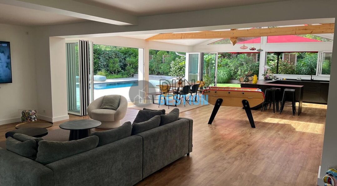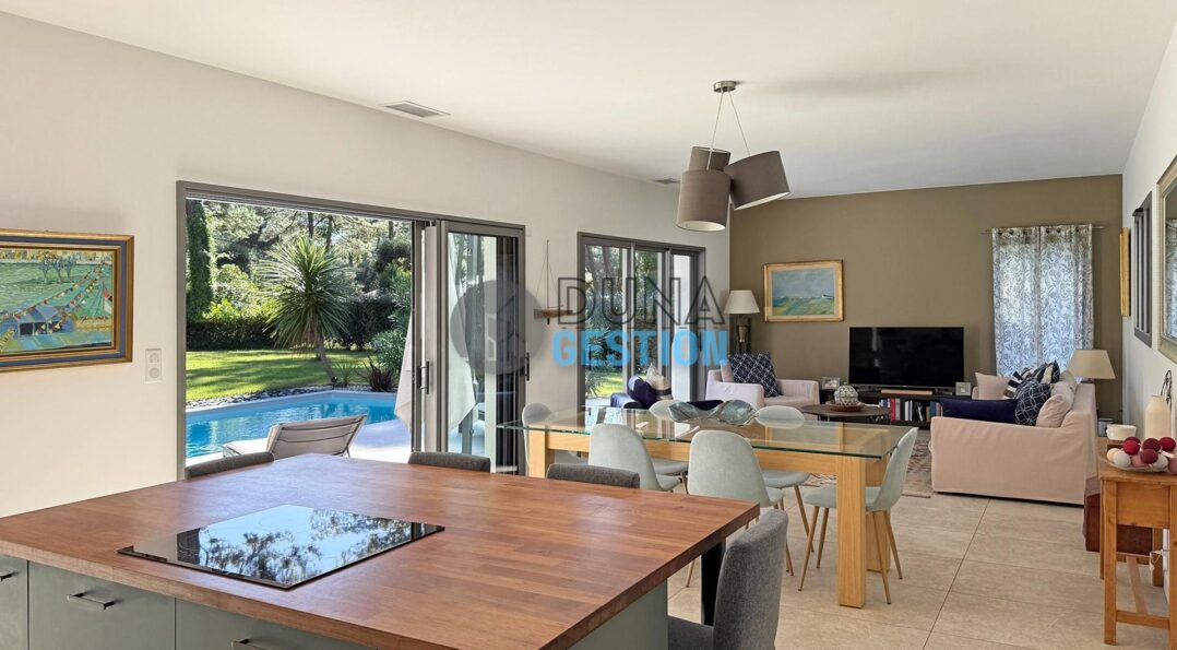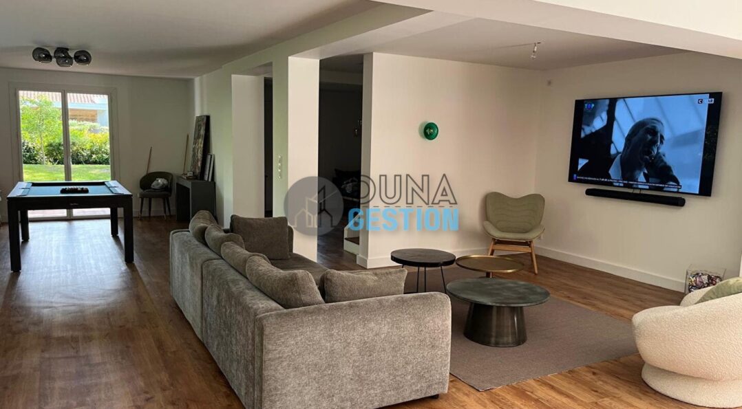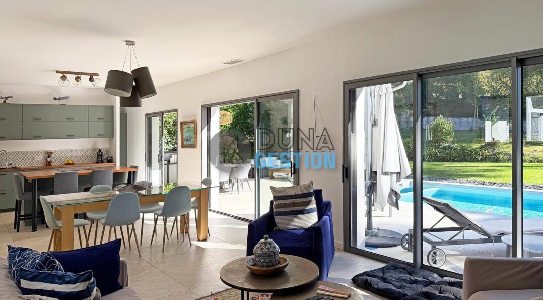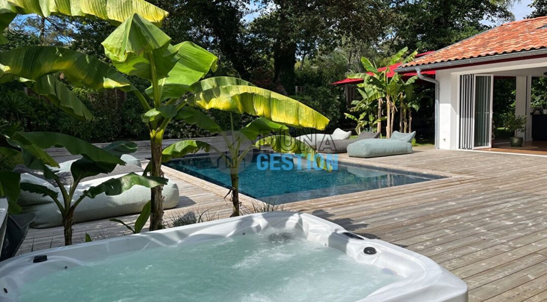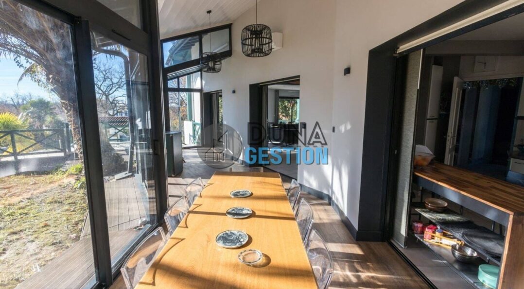 Idéalement située dans un environnement calme, à deux pas de la plage de la Piste, cette charmante maison d’environ 140 m² offre de très belles prestations.