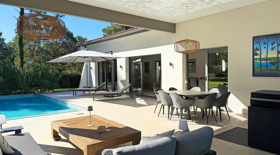 Villa Sola Villa Sola Nichée dans le secteur le plus prisé de Capbreton, la villa Sola est une signature architecturale de 2008 qui célèbre l’art de vivre landais. Entre forêt et océan, cette propriété rare se déploie sur un terrain spectaculaire de plus de 3 000 m², offrant un calme absolu à quelques coups de…