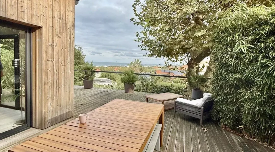 Superbe villa à Anglet Superbe villa à Anglet Si vous cherchez un endroit où le temps s’arrête, vous l’avez trouvé. Dominant les plages des Cavaliers et de La Barre, à deux pas de la Chambre d’Amour, la villa est une perle rare. Ici, l’horizon s’invite dans chaque pièce et le rythme des vagues accompagne vos journées.…