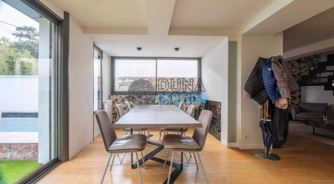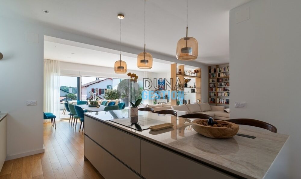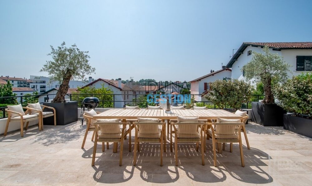 Cette magnifique maison rénovée dans un esprit contemporain se distingue par sa piscine à débordement et son emplacement privilégié. À proximité immédiate des commerces et du centre-ville, ce bien d’exception offre un cadre de vie luxueux et fonctionnel, idéal pour profiter pleinement de l'art de vivre basque.
