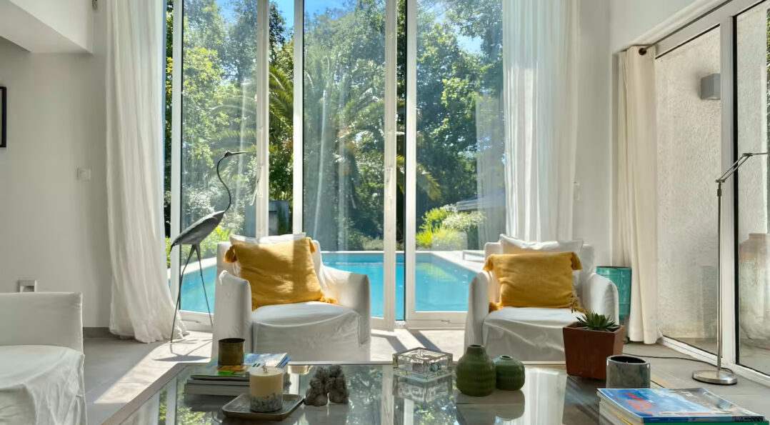 Villa d’architecte avec piscine et jacuzzi Villa d’architecte avec piscine et jacuzzi L’élégance à l’état pur. Entièrement repensée par un architecte de renom, la villa est une demeure de caractère où chaque détail a été soigné. Ici, les volumes lumineux et les matériaux nobles créent une atmosphère à la fois luxueuse et apaisante, à quelques minutes…