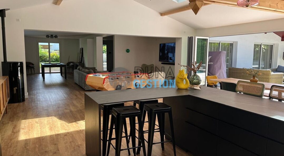 La Villa Vera, c’est le spot idéal si vous voulez être au calme tout en profitant du Golf d’Hossegor. La maison a été refaite à neuf et agrandie en 2019. Elle fait plus de 200 m2, donc il y a de l’espace pour tout le monde, le tout dans un style moderne et très propre.